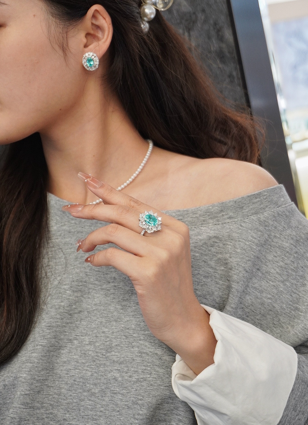 The beauty of Paraiba is really hard to refuse, and this set is super eye–catching
