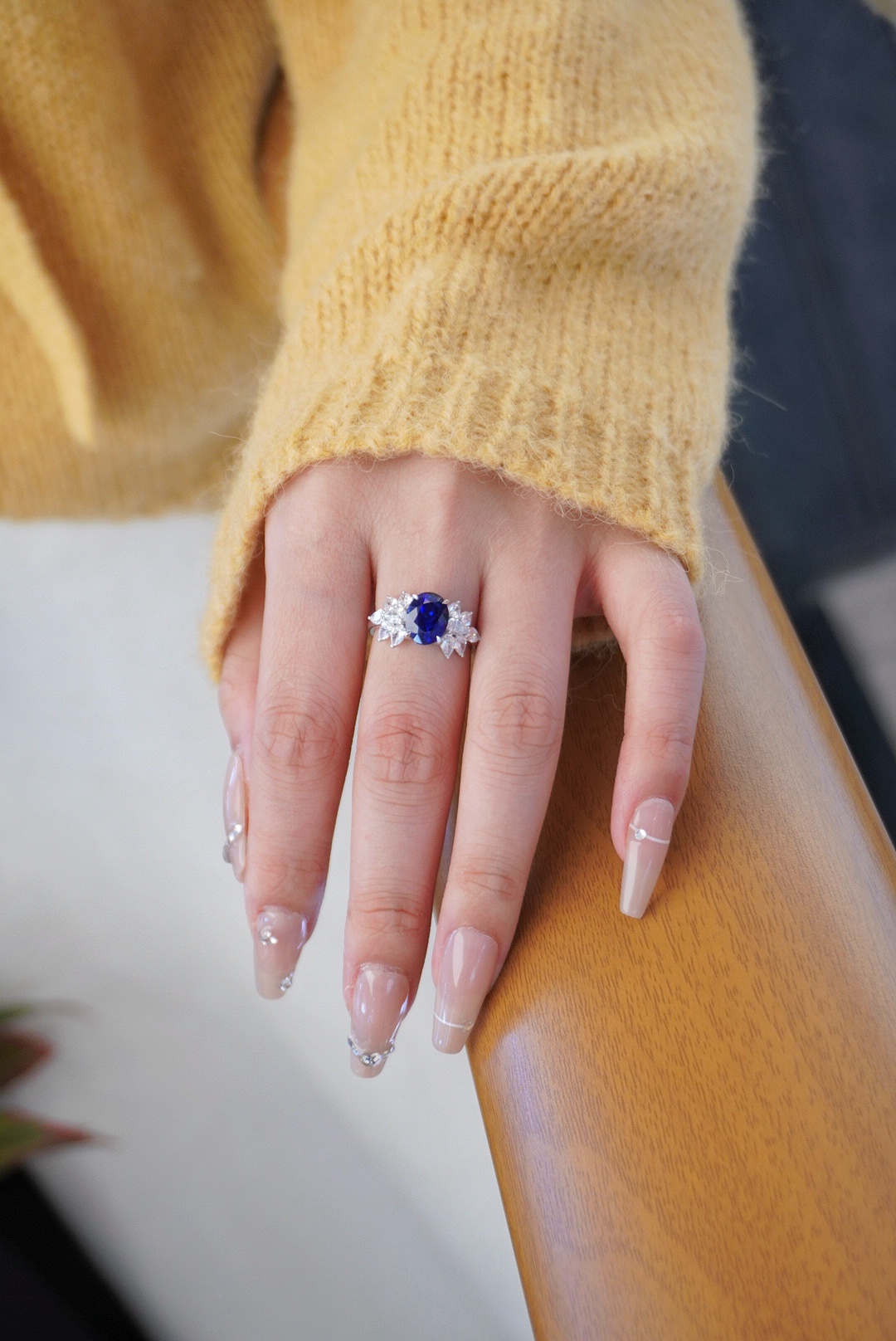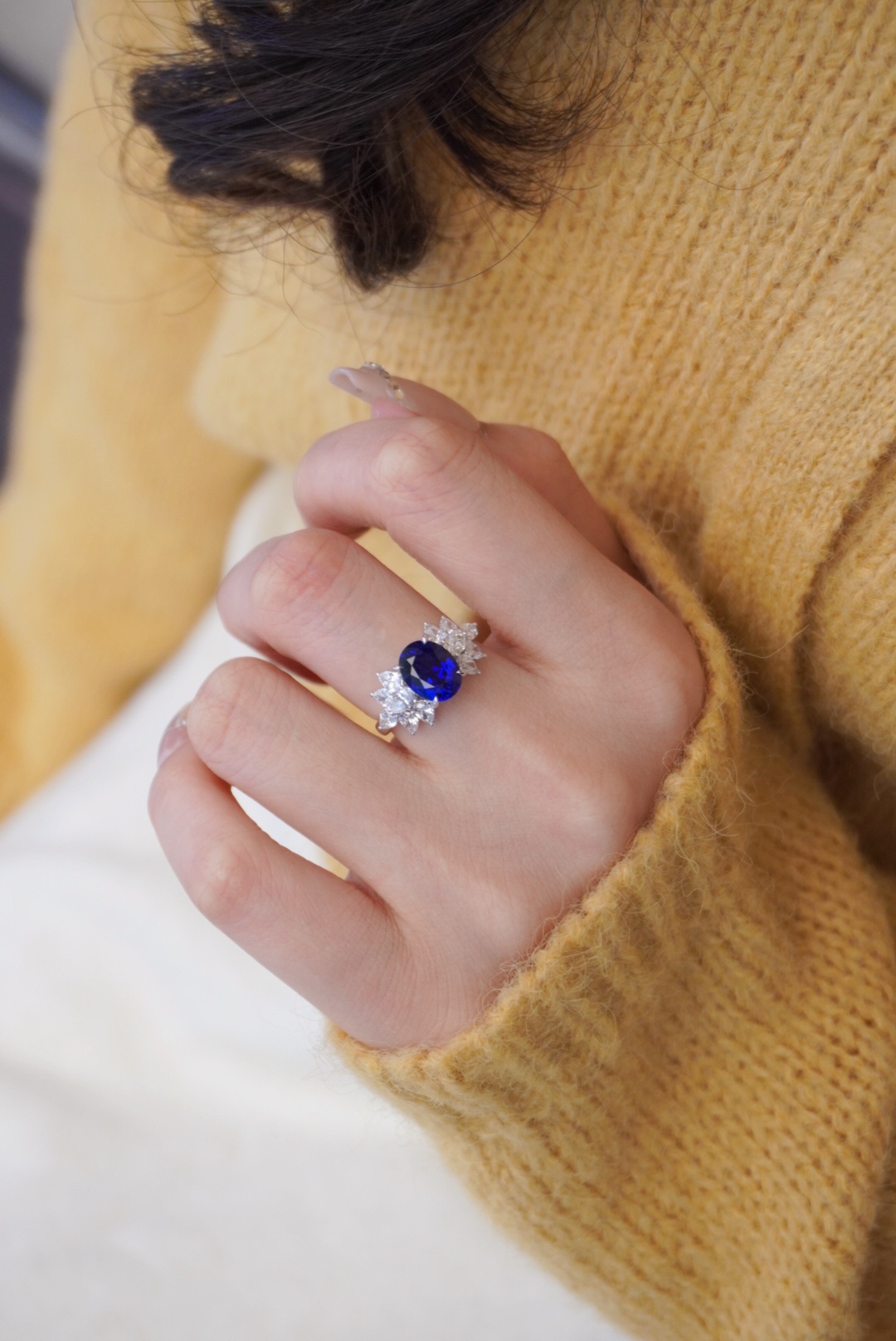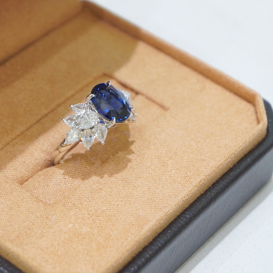 The 18k gold cultivated sapphire ring|candy shape adds a little sweetness and gentleness to the sapphire