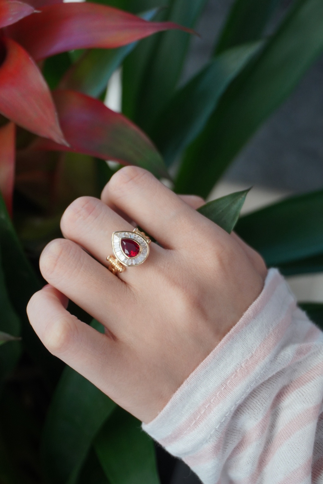 Rubies, which are indispensable in autumn and winter, have a retro feel when paired with gold