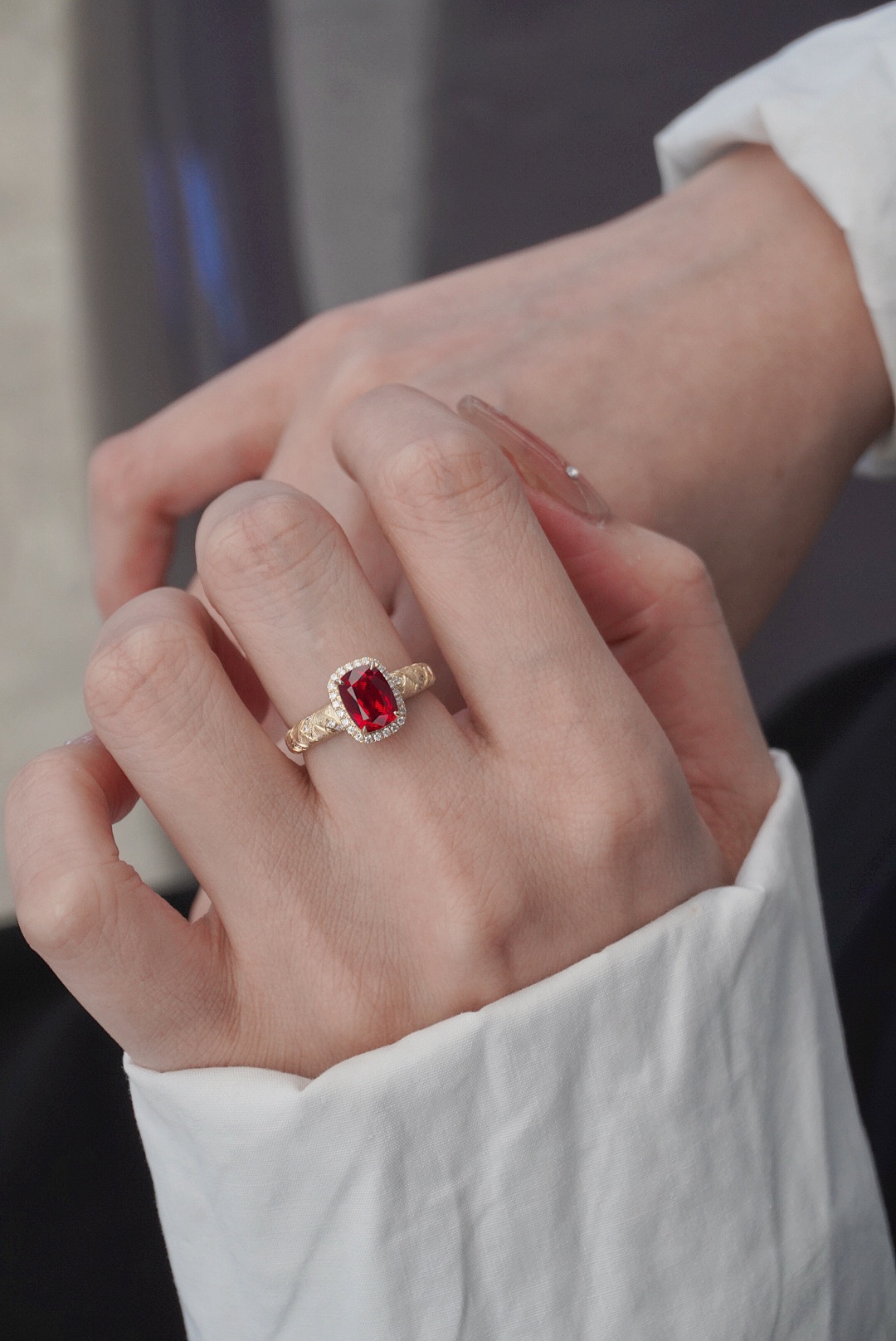 The criss–cross hand–woven effect and undulating lines make the ring more three–dimensional and layered, and it is super present to wear
