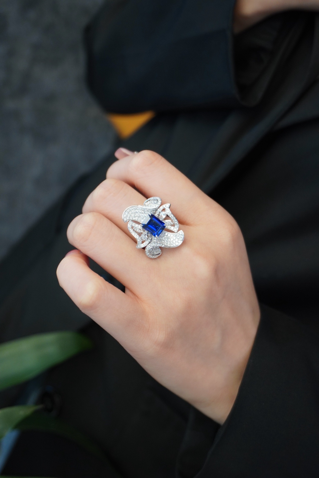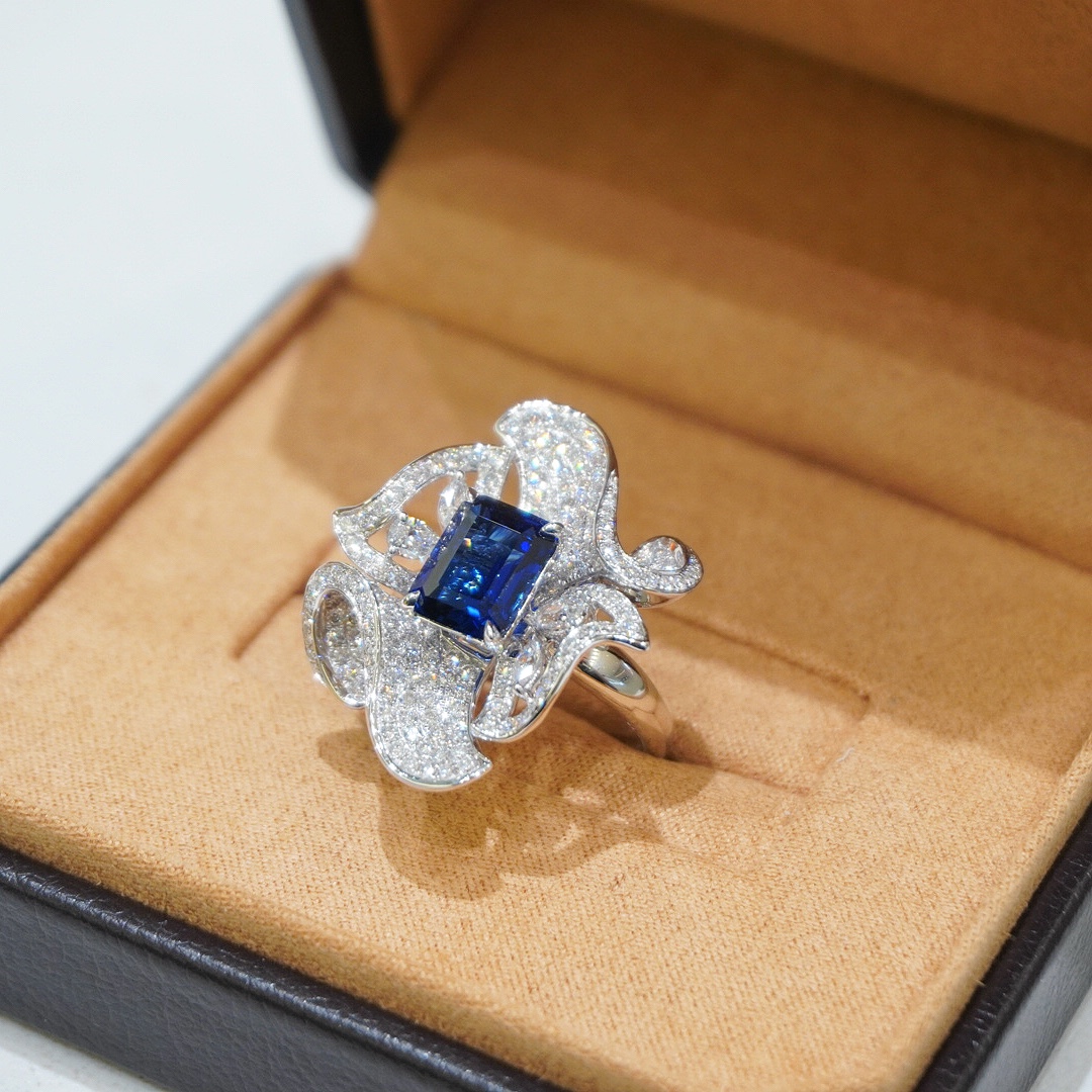 18K gold set with lab-grown sapphire feathers